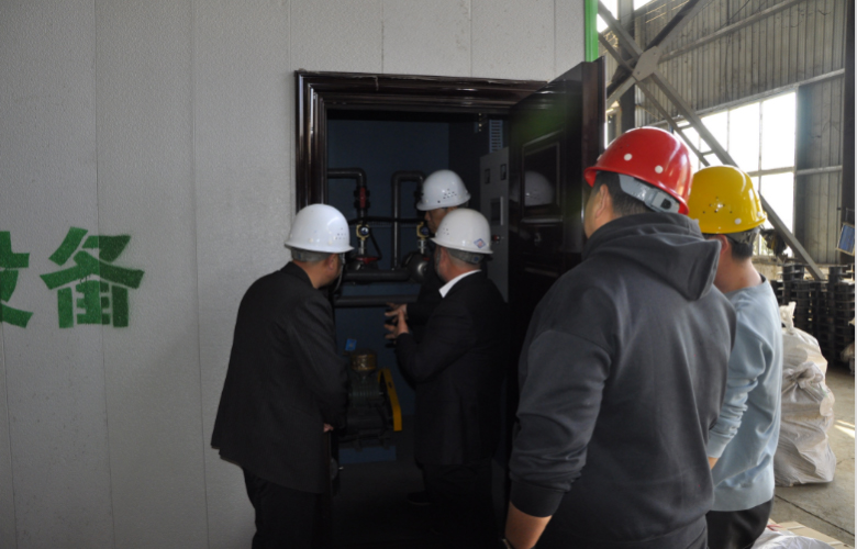 郭总带领考察团一行参观了永洁环保装备制造车间、不锈钢加工车间、检测实验室,与夏局长、苗会长对环保设备的生产加工工艺、生产质量控制、以及企业的科技创新发展进行了探讨交流。